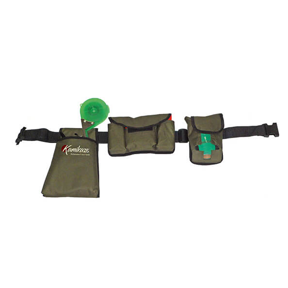 Cinturón con bolsillos para una atadora, grapas y cintas.