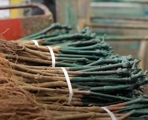 La producción de esquejes injertados termina con la tercera parafina cuya finalidad es preservar la hidratación de la planta hasta el momento de la plantación en el viñedo. En este punto nos encontramos en pleno invierno, una estación no apta para la planta, por lo que los esquejes deben almacenarse adecuadamente en cámaras frigoríficas especiales.